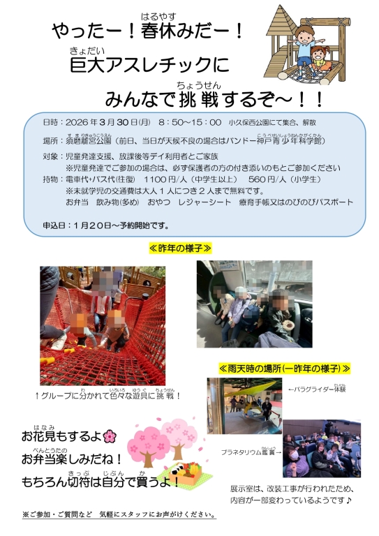 アスレチックでたくさん体を動かして、春の1日を思いきり楽しみましょう!