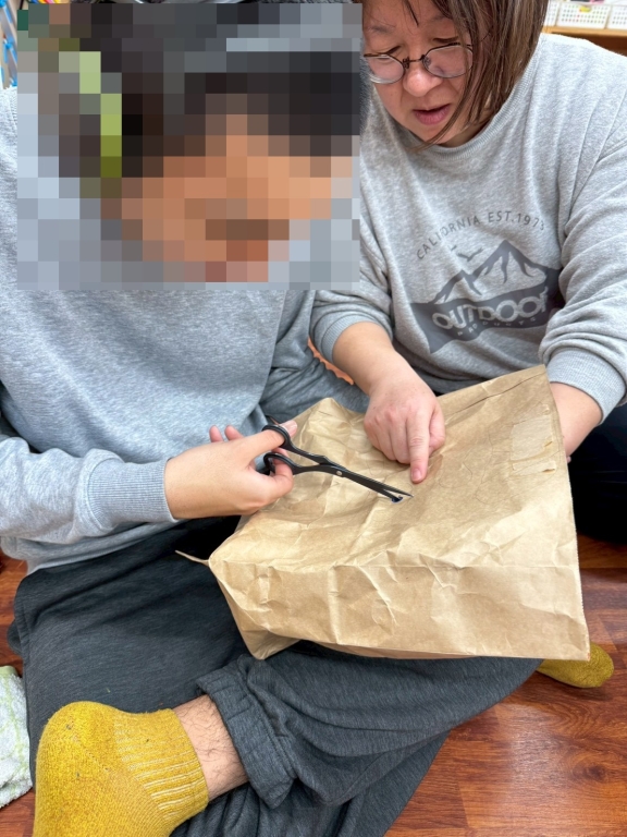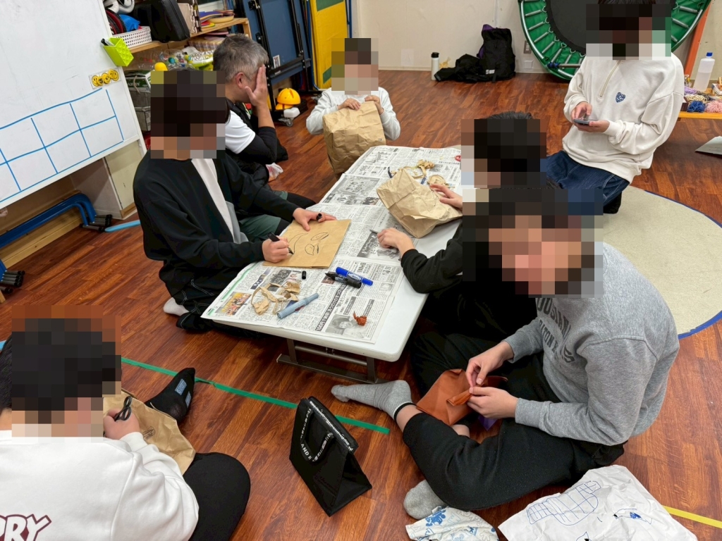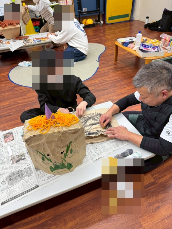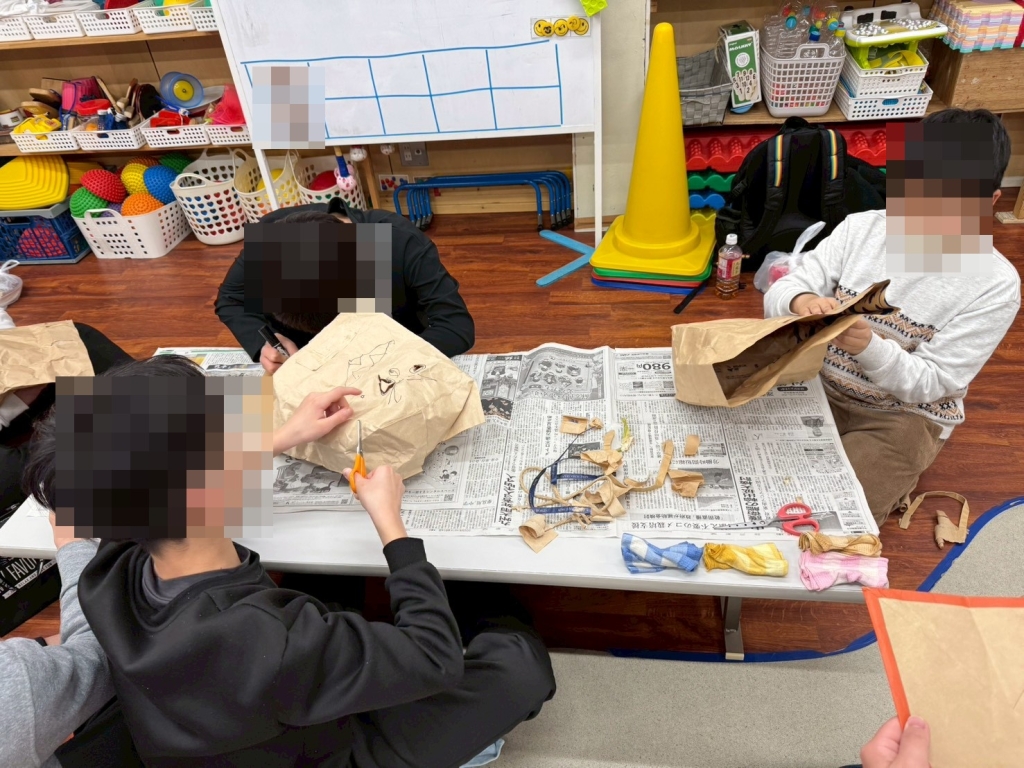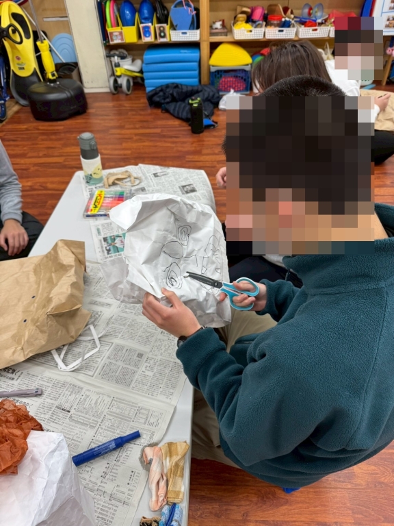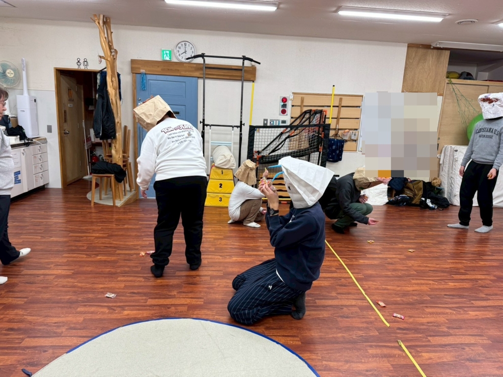 今年も節分の季節がやってきました!今回のリレーション上級では、紙袋を使って鬼のお面を作りました。
